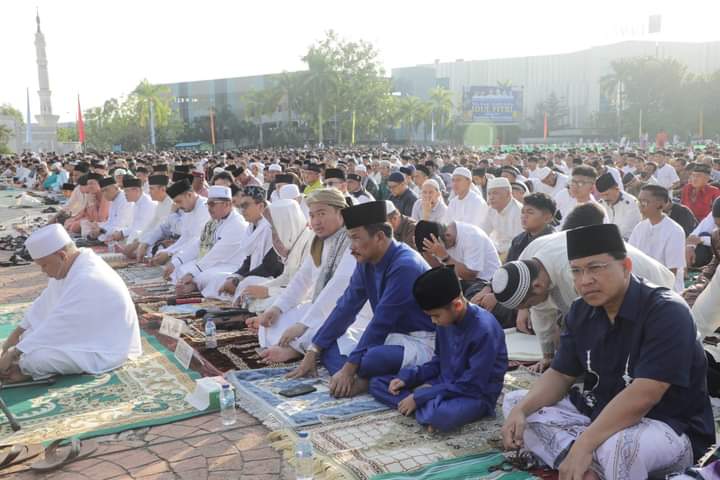 Rudi salat berjamaah bersama ribuan umat Islam yang memadati Dataran Engku Putri. Khatib pada kesempatan itu disampaikan oleh Ketua Majelis Ulama Indonesia (MUI) Kota Batam Lukman Rifai.